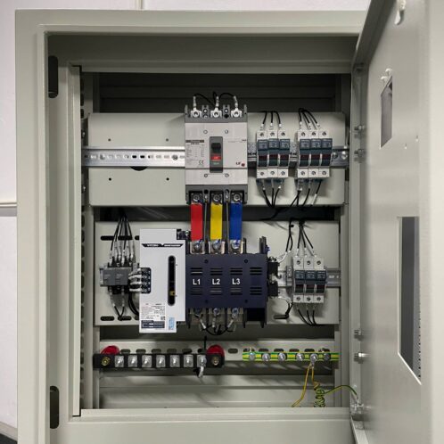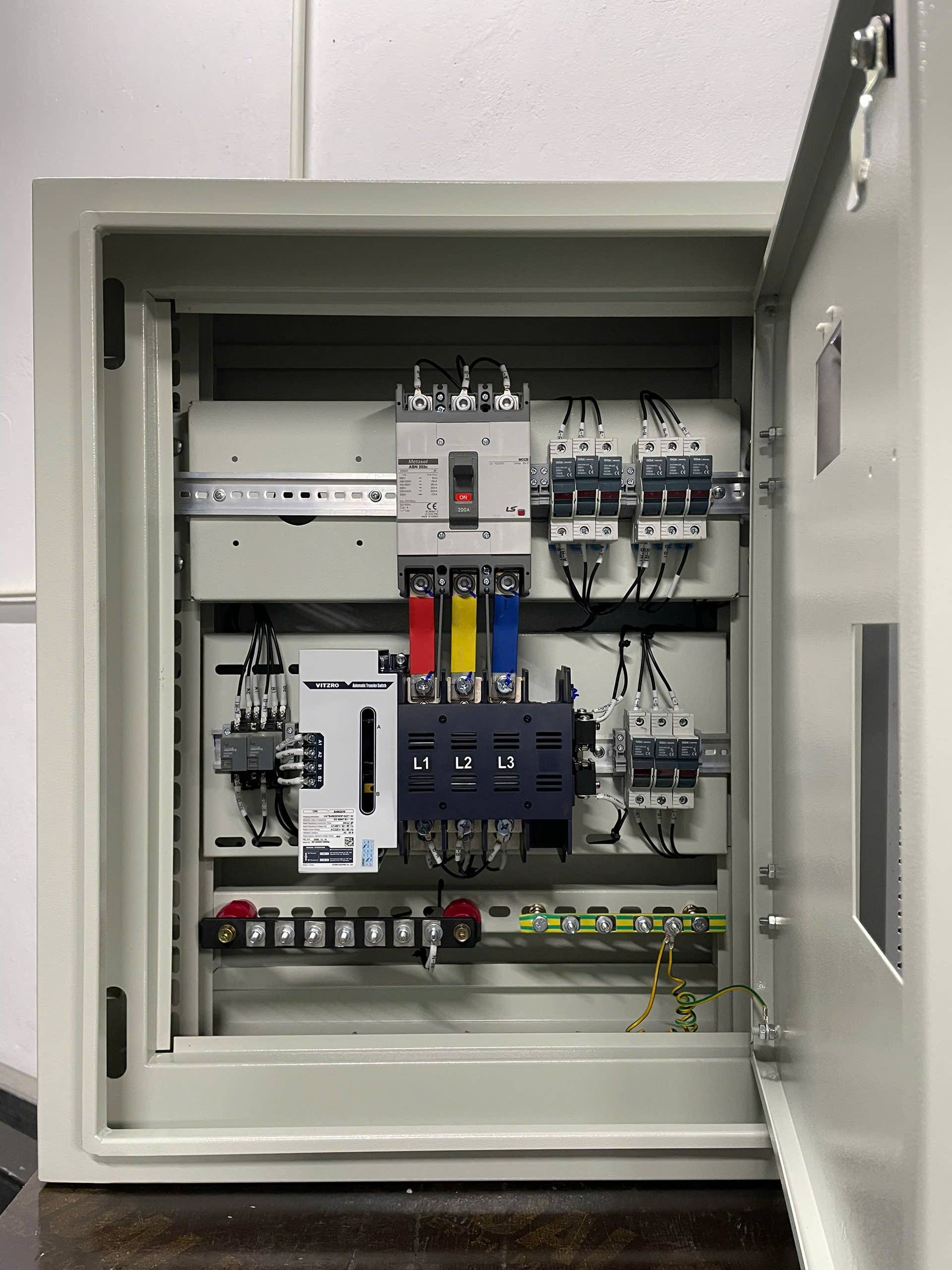 - Tủ điện ATS 2 nguồn điện lưới 1 nguồn lưới chính, 1 nguồn lưới dự phòng.